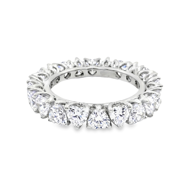 A continuous circle of shimmering cubic zirconia stones defines this Silver Heart Eternity Ring. Each stone features a precise heart-shaped cut to maximize light and romance. These stones sit securely in a classic shared-prong setting. This placement allows light to enter the gems from all sides. Therefore, the ring sparkles intensely with every movement of your hand. The full eternity design ensures a seamless look of luxury from every angle.