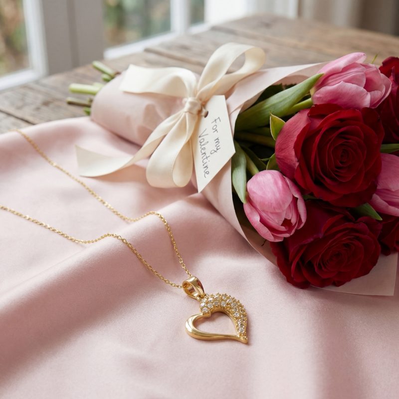This 9K Gold Pendant with CZ on a matching 9K gold chain represents the pinnacle of delicate, romantic jewelry design. The pendant features a modern, open-heart silhouette where one sweeping arch of gold meets a curved path of shimmering clear Cubic Zirconia (CZ). The high-grade CZ stones, meticulously set in a graduated row, capture and dance with the light to provide a diamond-like radiance. This elegant contrast between the polished gold and the sparkling accents ensures the piece remains a versatile staple for any wardrobe.