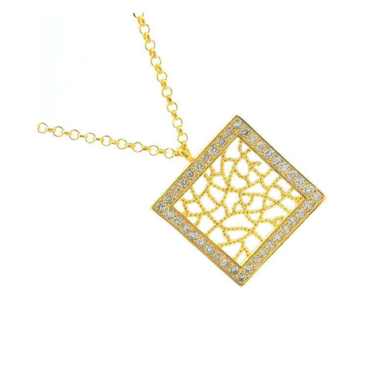 Sterling silver 925 necklace with dazzling cubic zircons and gold plating, meticulously crafted to exude elegance and sophistication. This modern pendant effortlessly embodies contemporary style while boasting a timeless allure. The extension chain allows for customizable length, ensuring a perfect fit for any neckline.