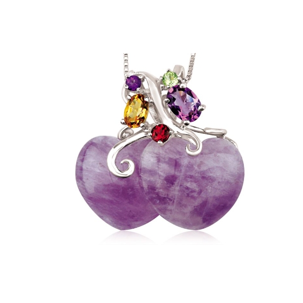 Sterling Silver 925 Pendant with Rhodium Plating and Natural Amethyst. A sterling silver 925 with rhodium plating box chain is included in the price. (length of chain 40 cm or 45 cm)