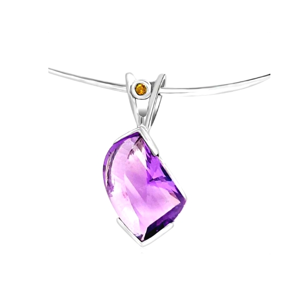 Sterling Silver 925 with Rhodium Plating Pendant with a Natural Laser Cut Amethyst.
