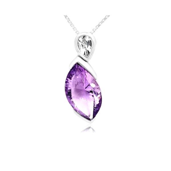 Sterling Silver 925 with Rhodium Plating Pendant with a Natural Laser Cut Amethyst.