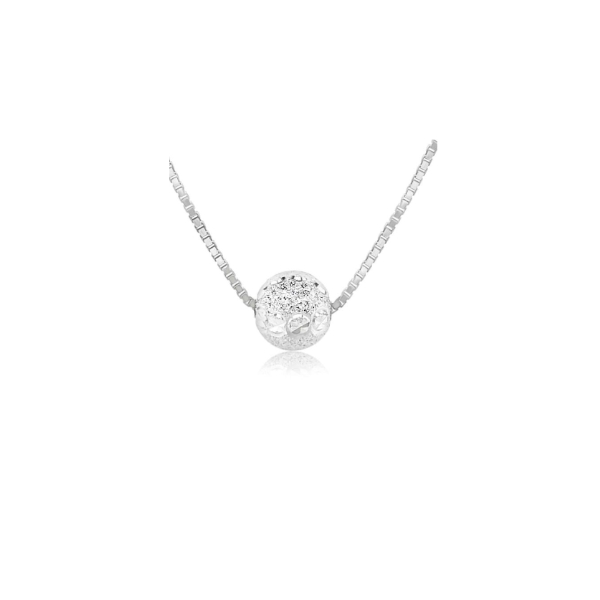 Sterling Silver 925 Diamond Cut Ball Bead Pendant with a diameter of 6 mm with Rhodium Plating on a sterling silver 925 with rhodium plating box chain (length of chain 40 cm).