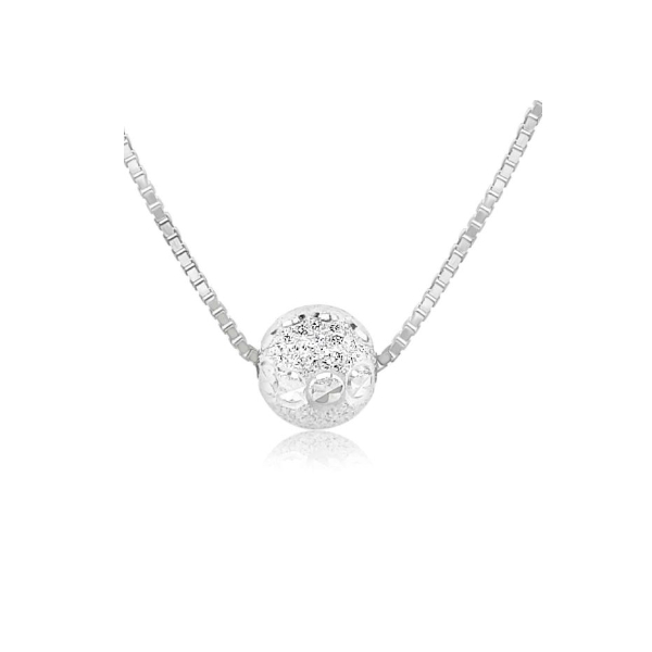 Sterling Silver 925 Diamond Cut Ball Bead Pendant with a diameter of 8 mm with Rhodium Plating on a sterling silver 925 with rhodium plating box chain (length of chain 40 cm or 45cm).