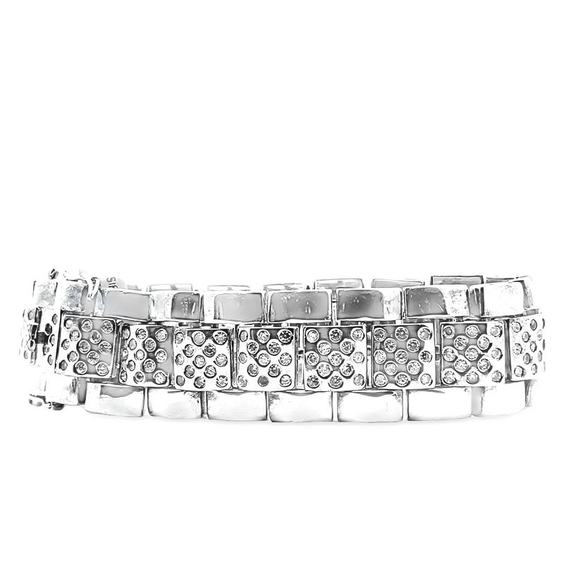 Elevate your style with this stunning silver bracelet featuring sparkling cubic zircons. The bold design of this big bracelet is sure to make a statement wherever you go. Crafted with high-quality rhodium plating, this piece exudes elegance and sophistication.