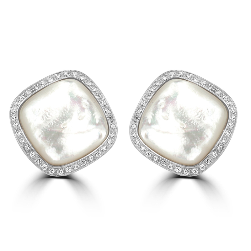 Sterling Silver 925 Pair of Earrings with Rhodium Plating, Cubic Zircons and Mother of Pearl.