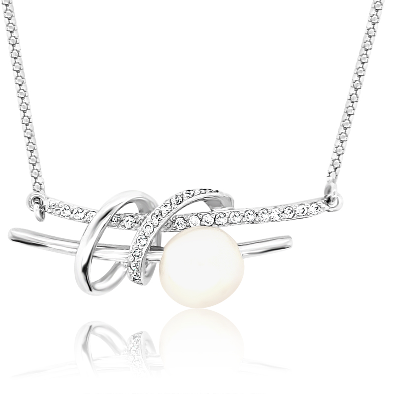 Sterling Silver 925 Necklace with Rhodium Plating, Cubic Zircons & one Natural Fresh Water Pearl.