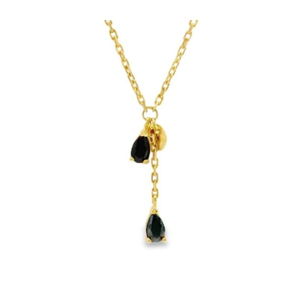 Elevate your style with this timeless necklace. Crafted from 925 sterling silver and plated in rich yellow gold, it showcases captivating black stones. The classic design effortlessly transitions from day to night, adding a touch of understated glamour to any outfit. Wear it solo for a subtle statement or layer it with other favorites for a personalized look that reflects your unique style.