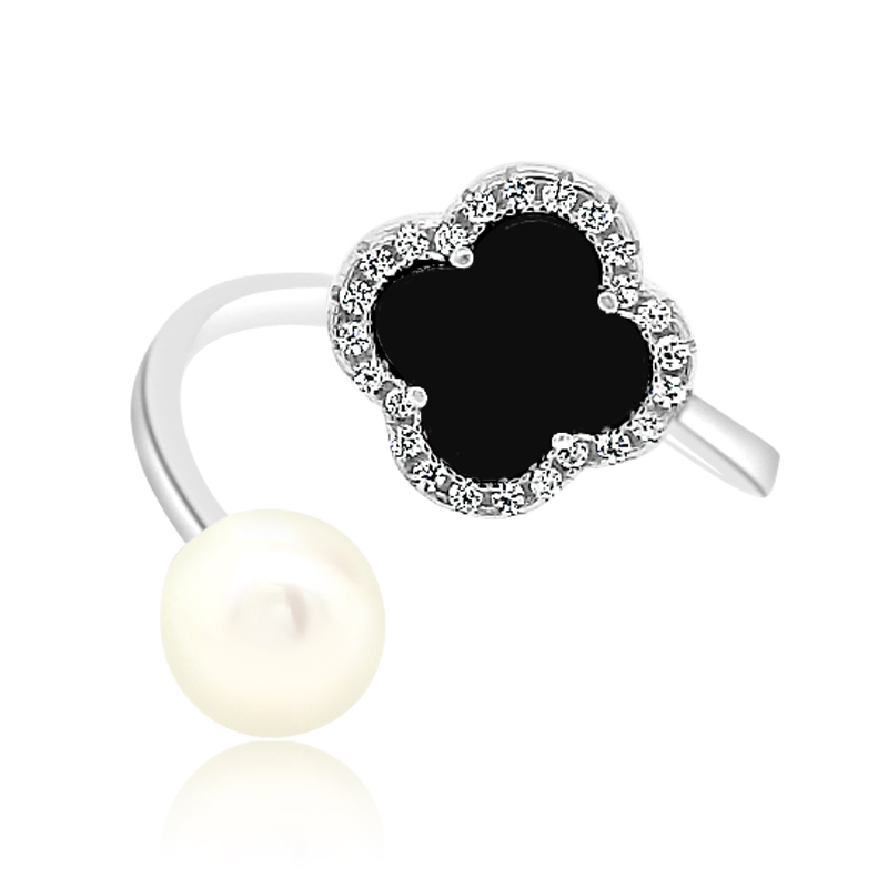 Sterling Silver 925 Ring with Rhodium Plating and a Natural Fresh Water Pearl.