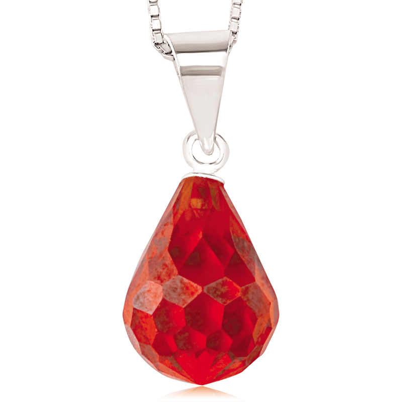 This radiant pendant features a captivating red crystal, expertly cut into a dazzling teardrop shape. Set in gleaming silver and suspended from a delicate sterling silver 925 with rhodium plating chain, it adds a brilliant pop of color and elegance to any ensemble.
