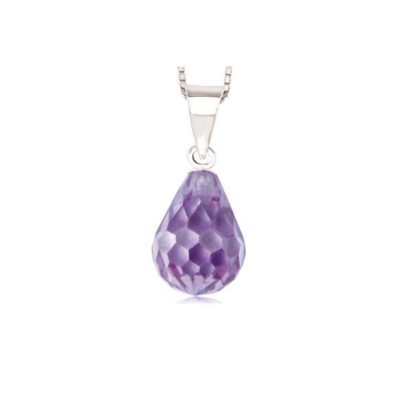 This radiant pendant features a captivating purple crystal, expertly cut into a dazzling teardrop shape. Set in gleaming silver and suspended from a delicate sterling silver 925 with rhodium plating chain, it adds a brilliant pop of color and elegance to any ensemble.