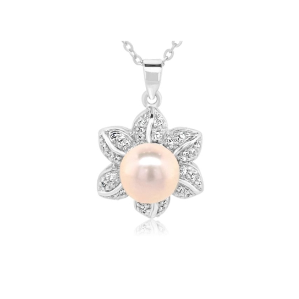 Sterling Silver 925 with Rhodium Plating Pendant with Cubic Zircons and a Pearl on a sterling silver 925 with rhodium plating chain is included in the price. (length of chain 40 cm or 45 cm)