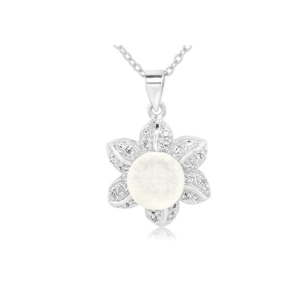Sterling Silver 925 with Rhodium Plating Pendant with Cubic Zircons and a Pearl on a sterling silver 925 with rhodium plating chain is included in the price. (length of chain 40 cm or 45 cm)