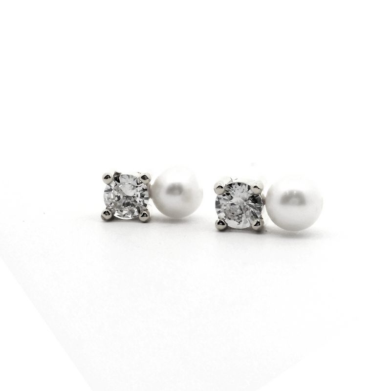 Sterling silver 925 earrings featuring lustrous freshwater pearls and sparkling cubic zirconia studs. These elegant earrings exude timeless beauty and sophistication, perfect for adding a touch of glamour to any outfit. The shimmering pearls and dazzling zircons catch the light effortlessly, creating a captivating and luxurious look.