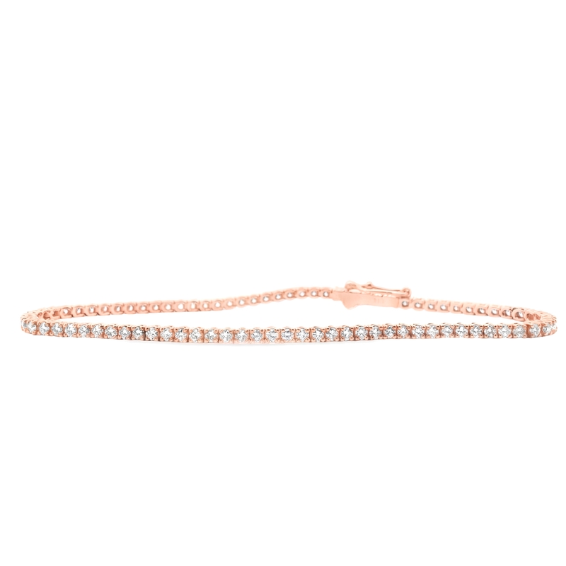 The entire piece fastens with a secure box clasp and often includes an added safety latch. In addition, the fluid movement and delicate profile make this Rose Gold Diamond Tennis Bracelet perfect for comfortable, all-day wear. Our expert jewelers meticulously inspect every 14K gold setting and diamond. We do this to guarantee superior craftsmanship and lasting beauty.