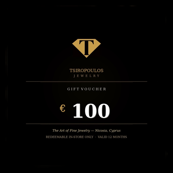 Valid for 12 months from the date of purchase. Redeemable against any item across all Tsiropoulos collections. Non-refundable and non-exchangeable for cash. Treat as cash — we are unable to replace lost or stolen vouchers.